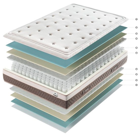 Su núcleo de muelles ensacados con armazón reforzado garantiza firmeza, independencia de movimientos y durabilidad.